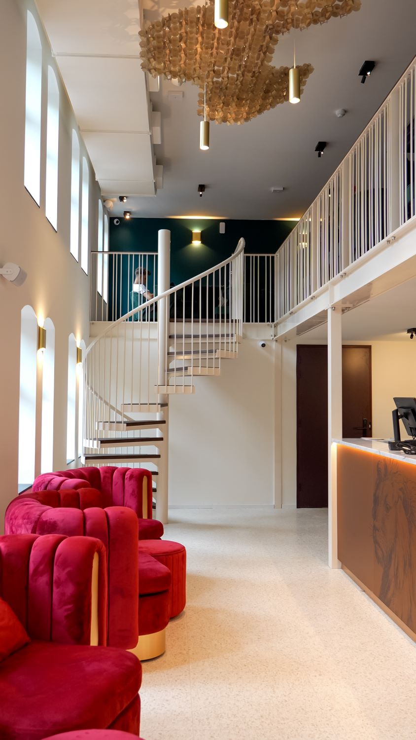 Het gebouw, daterend uit 1906–1910, is met respect voor de monumentale waarden getransformeerd tot een boutique hotel met 91 kamers in zes verschillende stijlen, variërend van knusse stadsuitzichtkamers tot ruime loft-stijl appartementen, waarbij de originele gevels, het dak en veel historische elementen zorgvuldig zijn behouden. Overal in het gebouw, van de lange gangen tot de stille hoeken, is de precisie van het oude drukwerk voelbaar in elk detail van de architectuur.