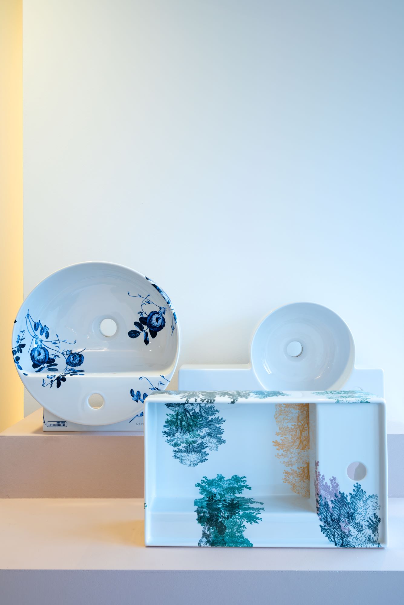 In de compleet vernieuwde showroom van LAUFEN Benelux worden vanaf nu twee ontwerpen van TATTOOtoilet tentoongesteld. Door de combinatie van de verfijnde illustraties van Esther Derkx met het innovatieve Saphirkeramik van LAUFEN ontstaat een geheel nieuwe dimensie in sanitair ontwerp. Saphirkeramik is een innovatief keramisch materiaal dat wordt gebruikt in diverse collecties van LAUFEN. Het materiaal bevat alle hygiënische voordelen van traditioneel badkamerkeramiek, maar is dunne, meer gedefinieerd en extreem robuust. De bijzondere eigenschappen zijn te danken aan de toevoeging van korund, een kleurloos bestanddeel van saffier.