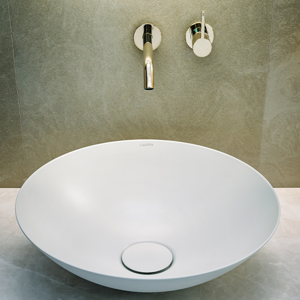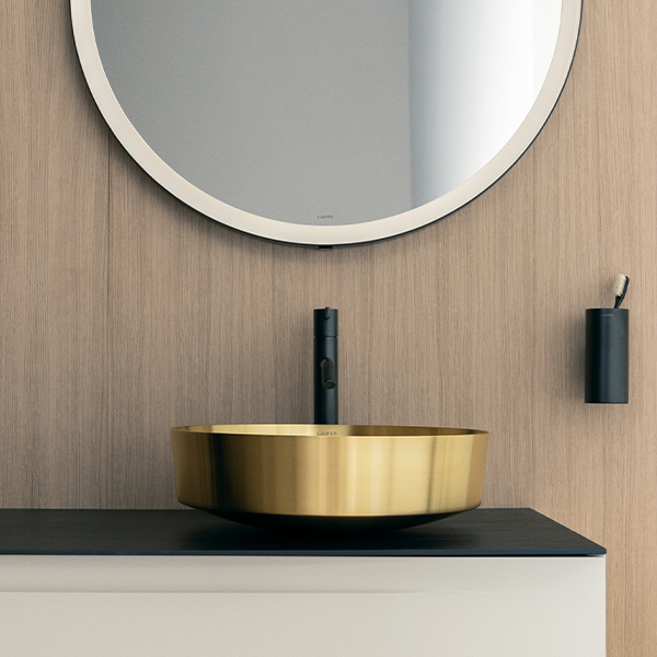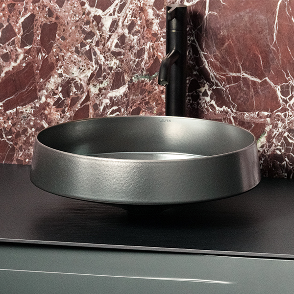 De komst van VITREON steel verrijkt de visuele wereld van LAUFEN met een sfeervoller kleurenpalet, waarin donkere tinten, rijke metallic kleuren en zwarte accenten samenkomen in een eigentijdse designtaal. Het is ontworpen om naadloos aan te sluiten op de meubelcollecties van LAUFEN en creëert een warme, verfijnde esthetiek, gekenmerkt door levendige oppervlakken en unieke tactiele effecten.